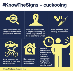 - National Crime Agency has published information about County Lines and Cuckooing here.