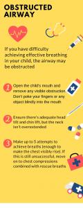 Keeping the airway open, look, listen and feel for normal breathing by putting your face close to your child’s face and looking along their chest.